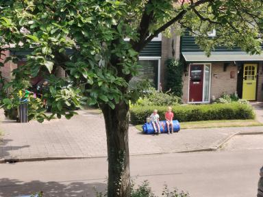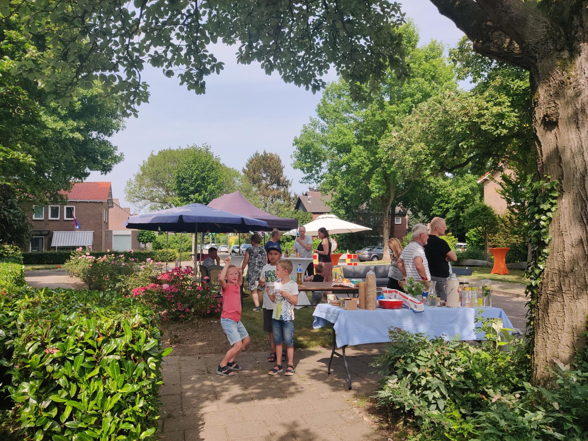 De afzethekken van de gemeente worden op de weg geplaatst en de weg wordt samen met de groene grasveldjes een mooie plek voor de buurtontmoeting. Op de oprit van een buurtgenoot wordt het opgerolde kussen in mum van tijd opgeblazen tot een piraatspringkussen met glijbaan. Dit is meteen een groot succes voor de kleinere kinderen in de straat, die ondanks de hitte hier in- en uitspringen/glijden.