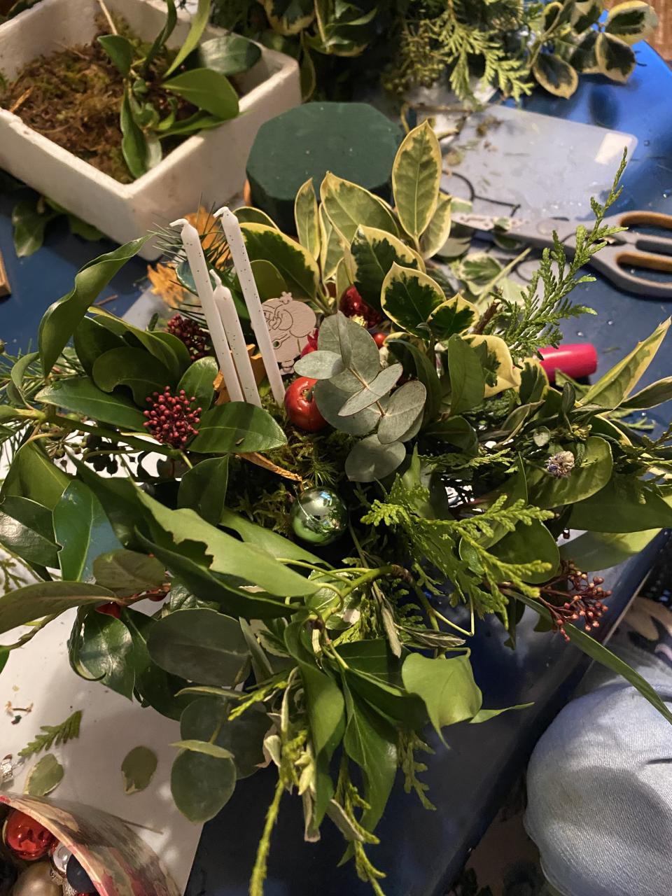 Kerststukjes en kerstkaarten maken met kinderen uit de straat .