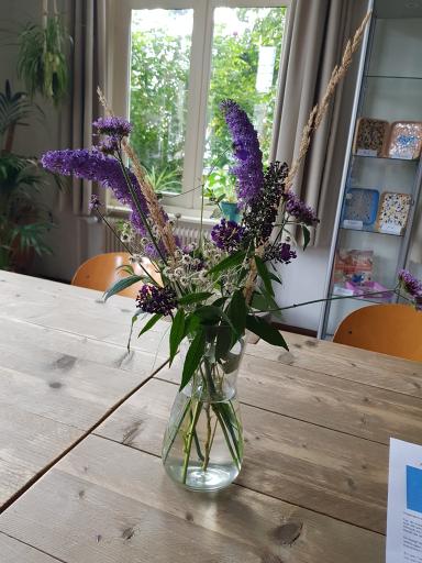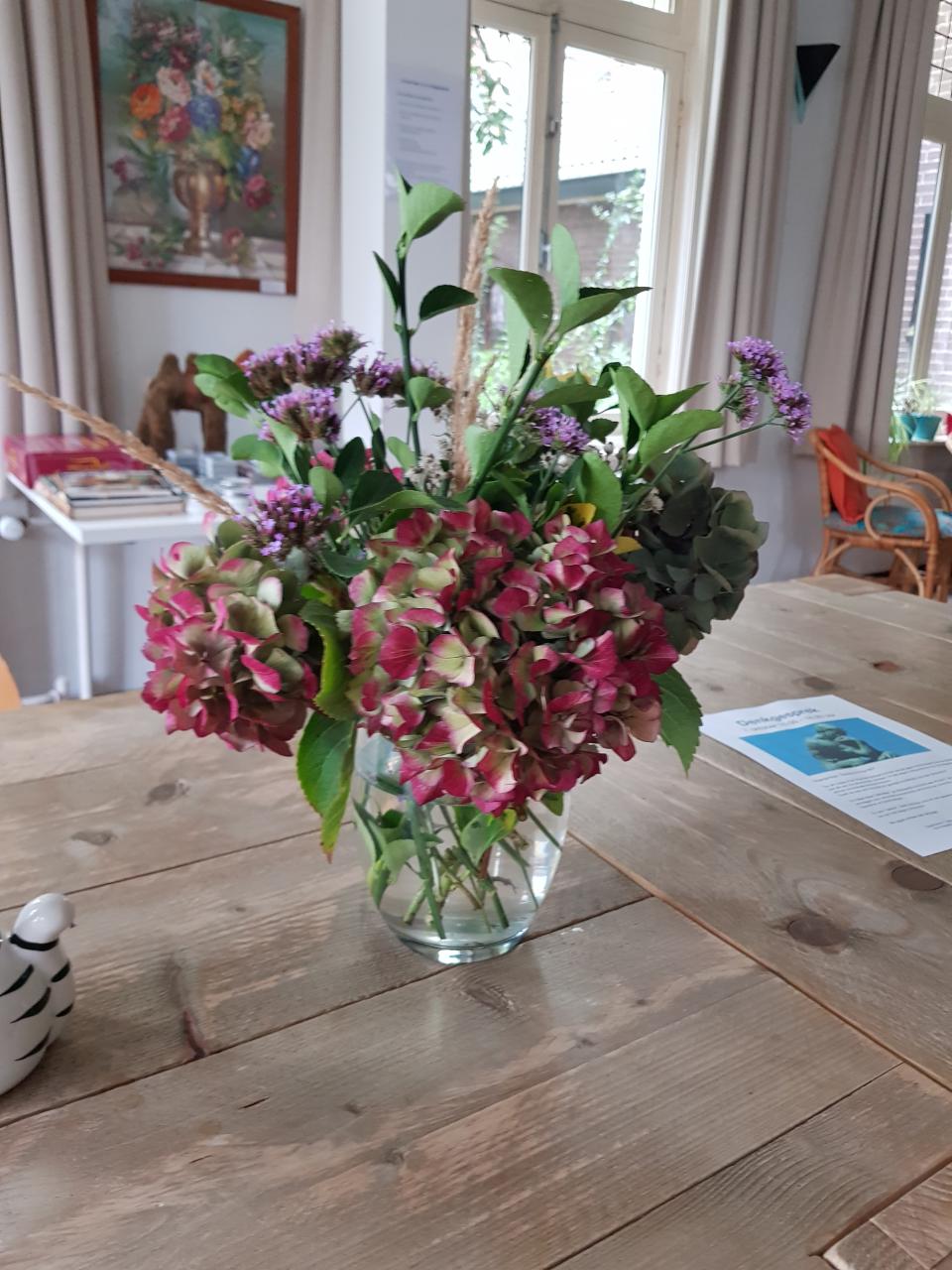 Maar afgelopen augustus en september zorgden de vrijwilligers voor de prachtigste boeketjes in de vazen, met bloemen uit eigen tuin.