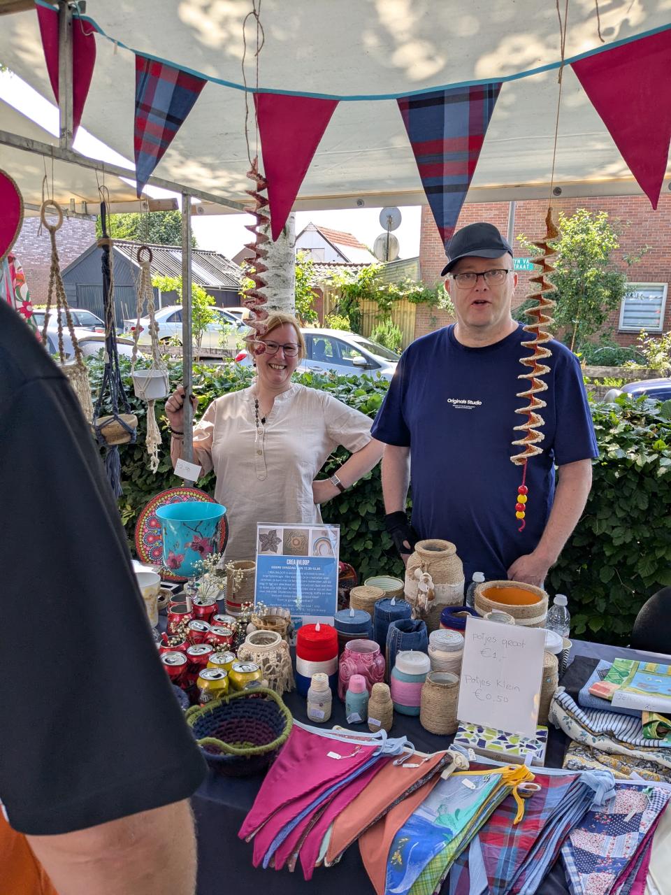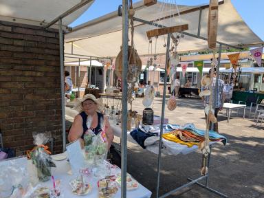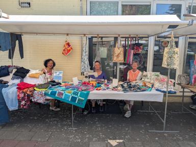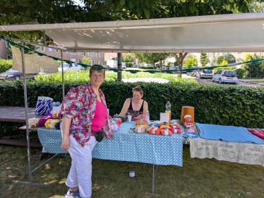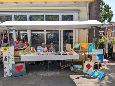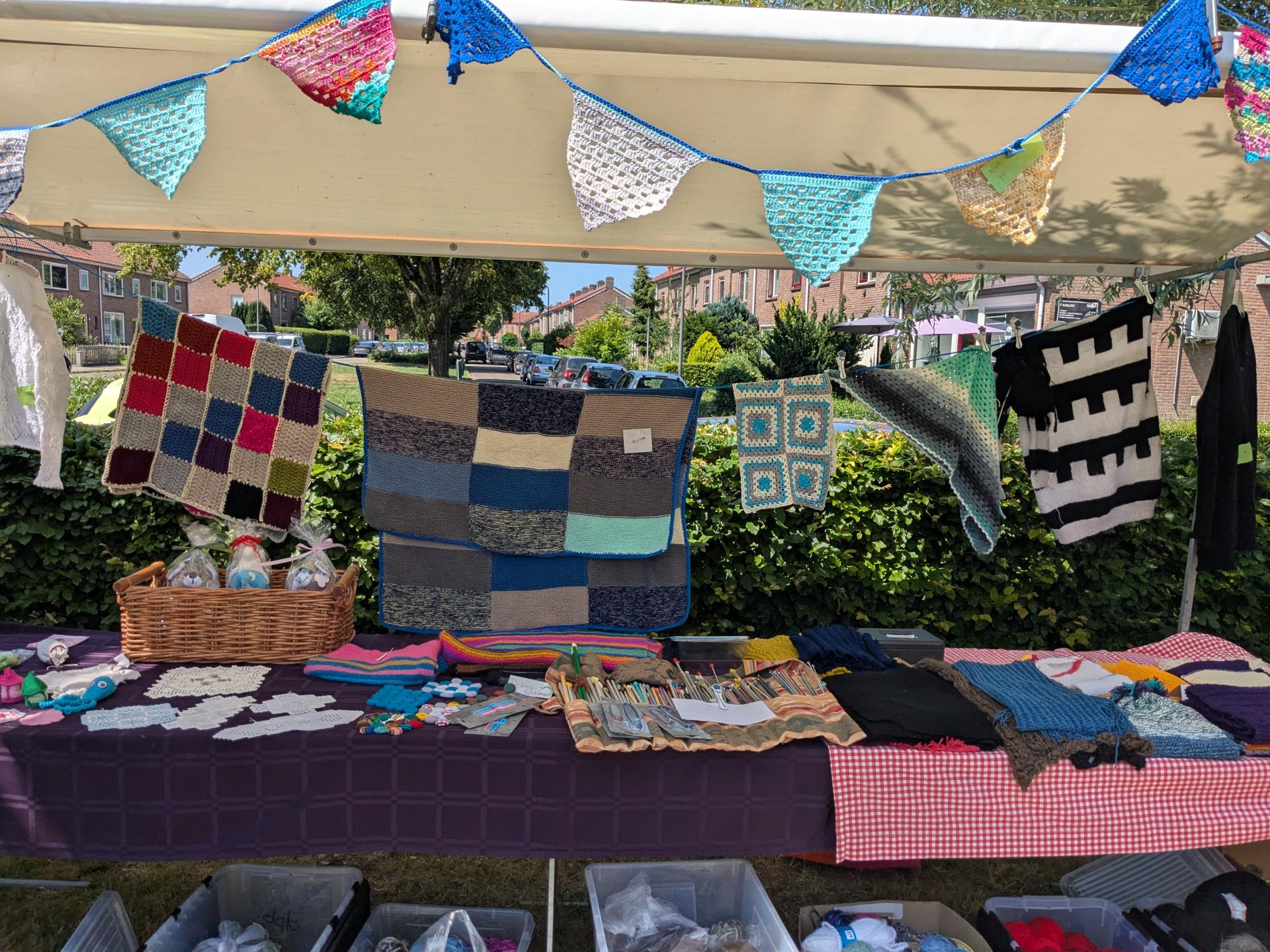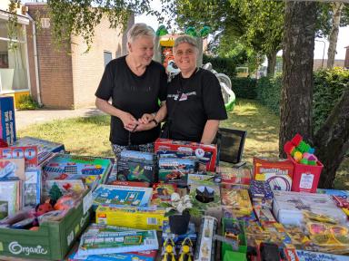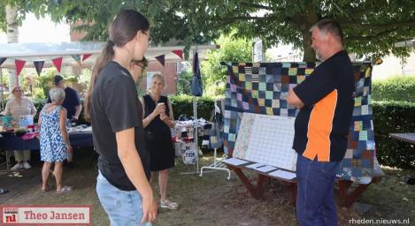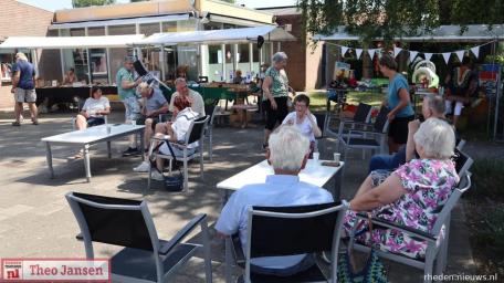 Op zaterdag 21 juni vond de eerste editie van de Midzomermarkt plaats rondom het Inloophuis en de VrijeTijdsVleugel in Dieren. De markt trok veel bezoekers en was gevuld met een gevarieerd aanbod van creatieve, handgemaakte en tweedehands artikelen. Er stonden 20 kramen opgesteld met onder andere handwerken, zelfgemaakte cadeaus, tafeltjes, speelgoed en tweedehands spullen. Veel van de producten zijn in de VrijeTijdsVleugel door vrijwilligers en deelnemers gemaakt. Vanwege het warme weer waren de tijden aangepast en alle activiteiten vonden buiten plaats. Voor de kinderen was er een springkussen, maar daar werd maar beperkt gebruik van gemaakt. Op het plein voor het gebouw waren zitjes opgesteld en er was gratis koffie en thee verkrijgbaar, zoals gebruikelijk is in het Inloophuis. Voor een klein bedrag kon men er zelfgemaakt lekkers bij kopen. Buurtbewoners en vaste bezoekers ontmoetten elkaar en het kwam tot leuke gesprekken. Het was gezellig druk en er is goed verkocht. Het grootste deel van de opbrengst is ten goede gekomen aan het Inloophuis en hiervan worden weer nieuwe materialen gekocht voor de activiteiten. Dankzij de vele vrijwilligers en de beroepskrachten Deborah en Davina was de dag een groot succes en zeker voor herhaling vatbaar.